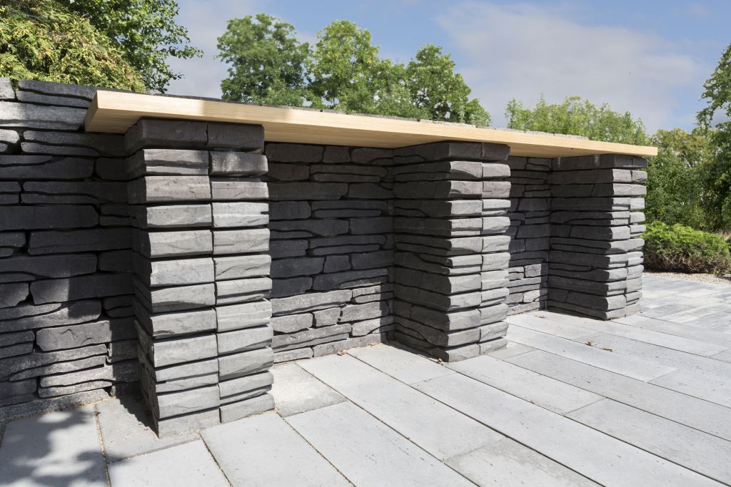 Murek z betonowych prefabrykatów może być również sposobem na „prywatność”. Z bloczków Grando można stworzyć zaciszny kącik lub zasłonić, przy ich pomocy, te elementy, które nie są zbyt estetyczne np. strefę techniczną ze śmietnikiem. Atrakcyjność murkowych rozwiązań można zwiększyć, sadząc obok pnącze, takie jak np. winobluszcz. Naturalna zieleń doskonale pasuje do kolorów Grando, czyli grafitowego, paloma i piaskowego. Wymienione funkcje spełnia również murek Polbruk Albero. Łączy on klasyczny kamienny wygląd z nowoczesną estetyką. Jego design przywodzi na myśl dawne murki graniczne wykonane z łupanego kamienia, jakie były często budowane w średniowieczu, na granicy posiadłości w Toskanii czy Szkocji. Elementy wykorzystywane do budowy murków, umożliwiają także realizację mniej oczywistych pomysłów w ogrodowej przestrzeni.