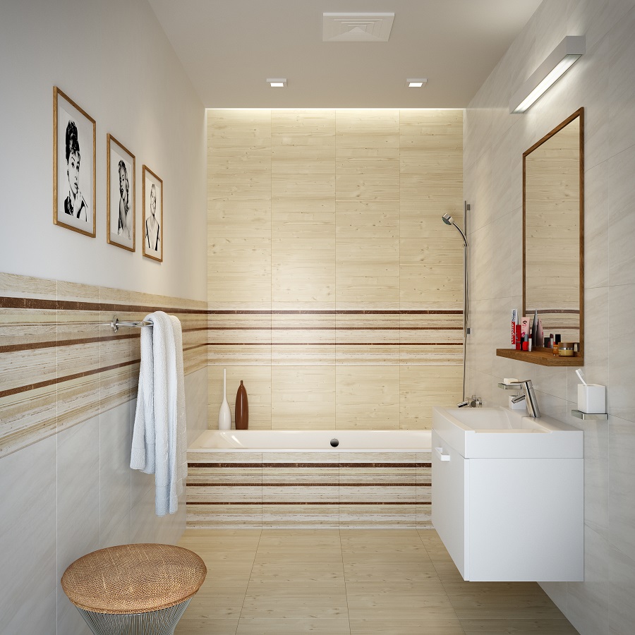 i również do nowoczesnych, minimalistycznych przestrzeni o miejskim charakterze. Znakomicie zaprezentuje się w łazience, w holu oraz salonie. Na podłogach tworzy jasne i czyste posadzki, na ścianach doskonale imituje fornirowe panele.