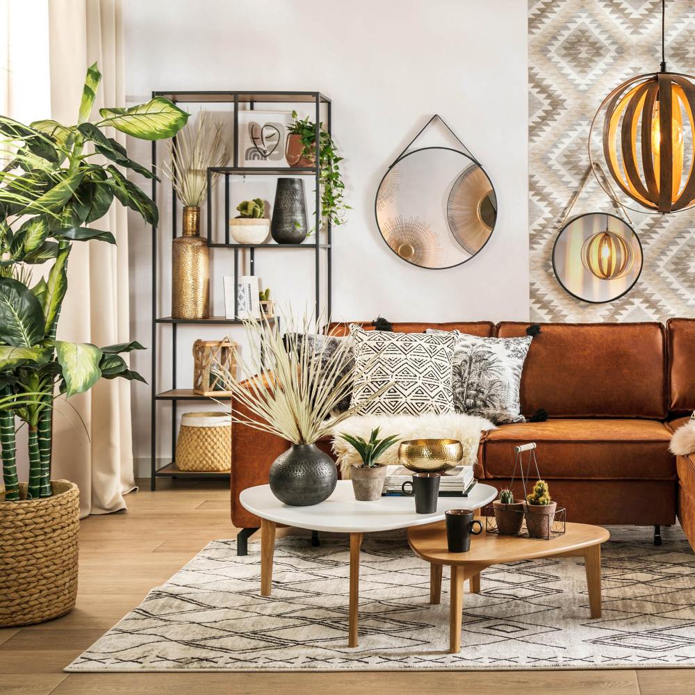 Terakota obroni się w pomieszczeniach o różnych stylach! We wnętrzach boho można postawić np. na kanapę w tym odcieniu.